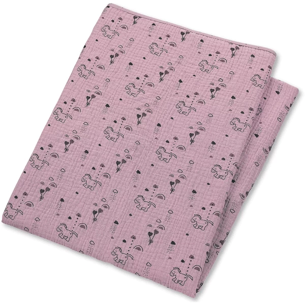 Kuschelige Schmusedecke aus Musselin-Stoff mit Motiv Pony „Pauline“.